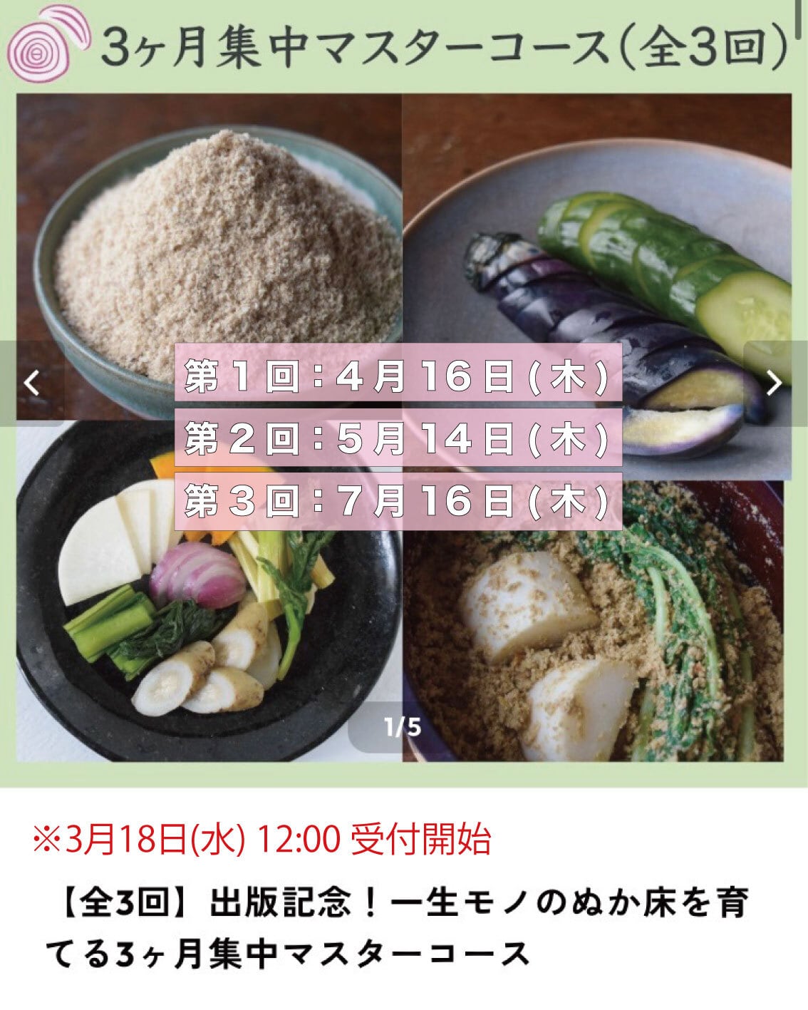 【全3回】出版記念!一生モノのぬか床を育てる3ヶ月集中マスターコース